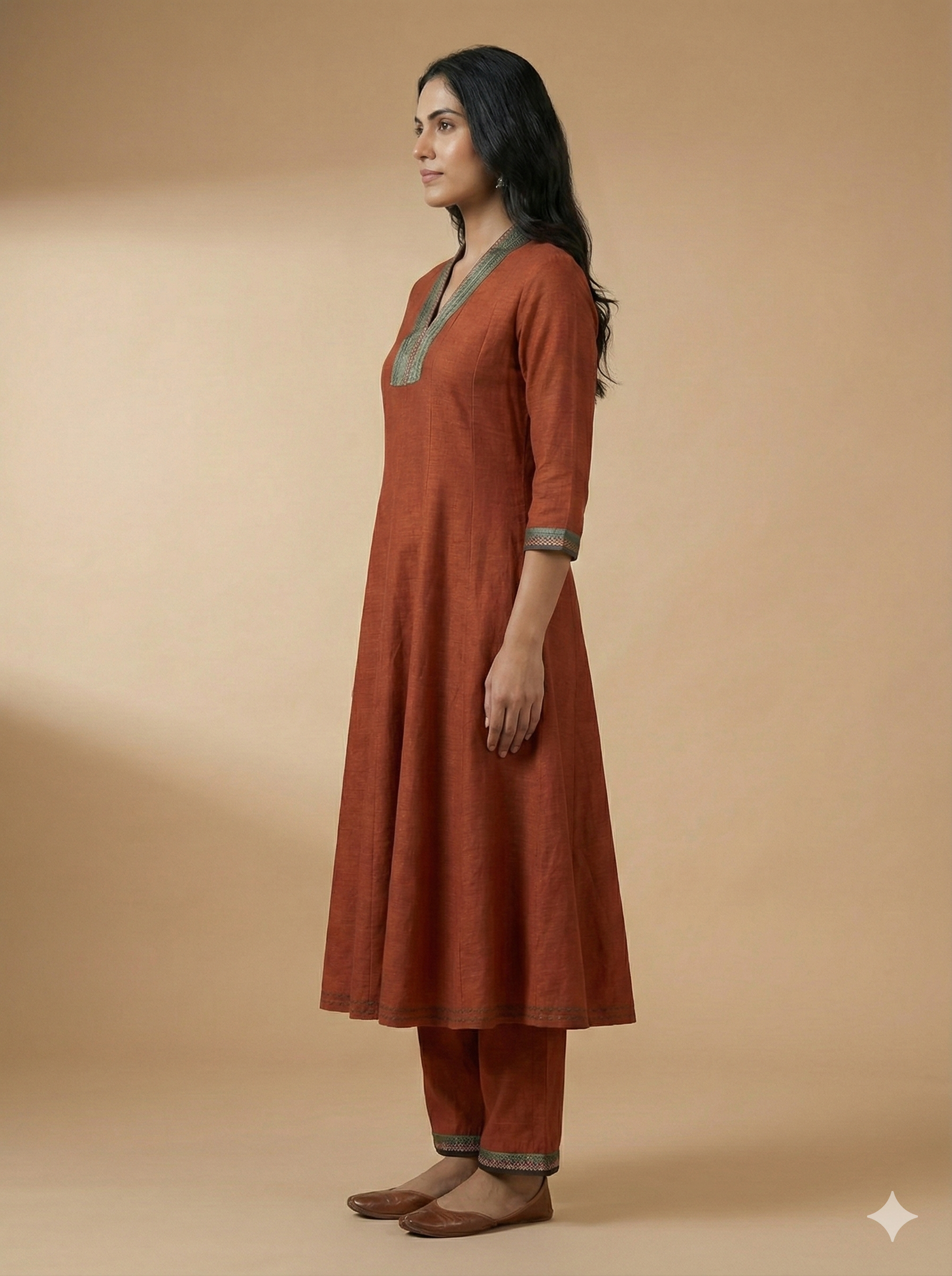 Brown V Neck Silk Kurta Set
