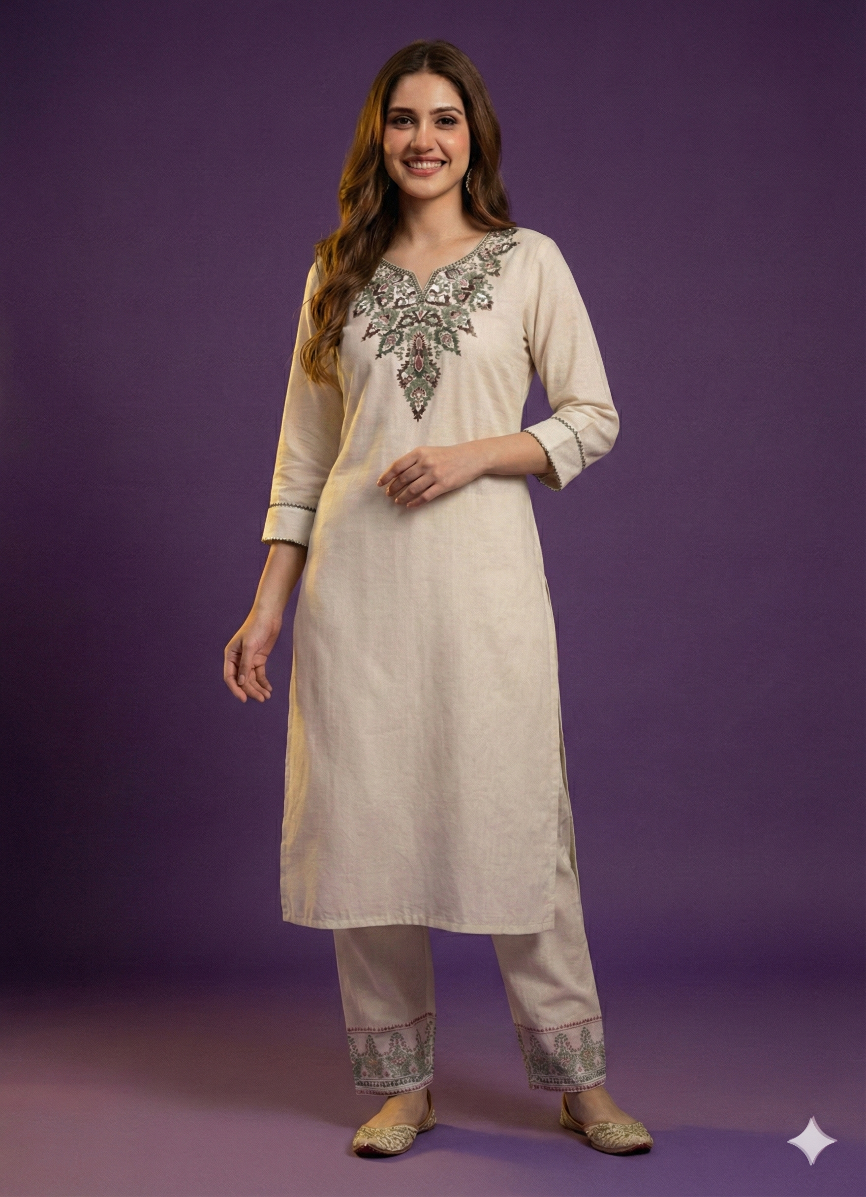 Enjoy effortless style and comfort with this ivory round neck cotton kurta. Made from soft, breathable cotton fabric, it ensures all-day comfort and ease of movement. The classic round neckline and simple design make it an ideal choice for casual wear, daily outings, or relaxed gatherings.
