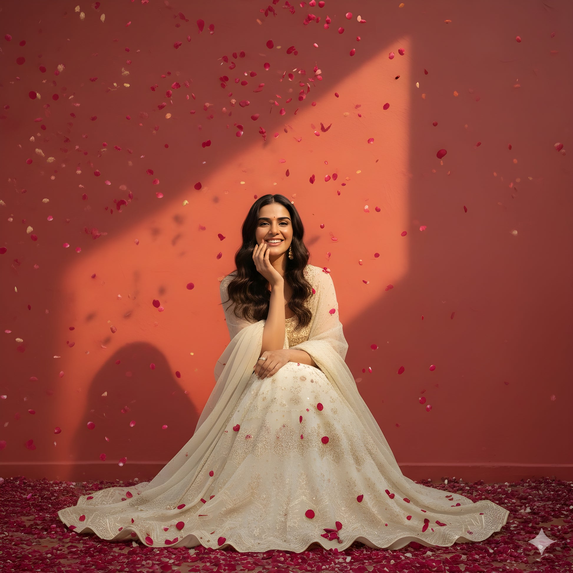 This elegant ivory silk set features a classic round-neck sleeveless top paired with flowing Skirt bottoms for a refined, modern look. The luxurious silk fabric offers a smooth shine and graceful drape. Completed with a soft net dupatta, this 3-piece set is perfect for festive occasions and special celebrations.
