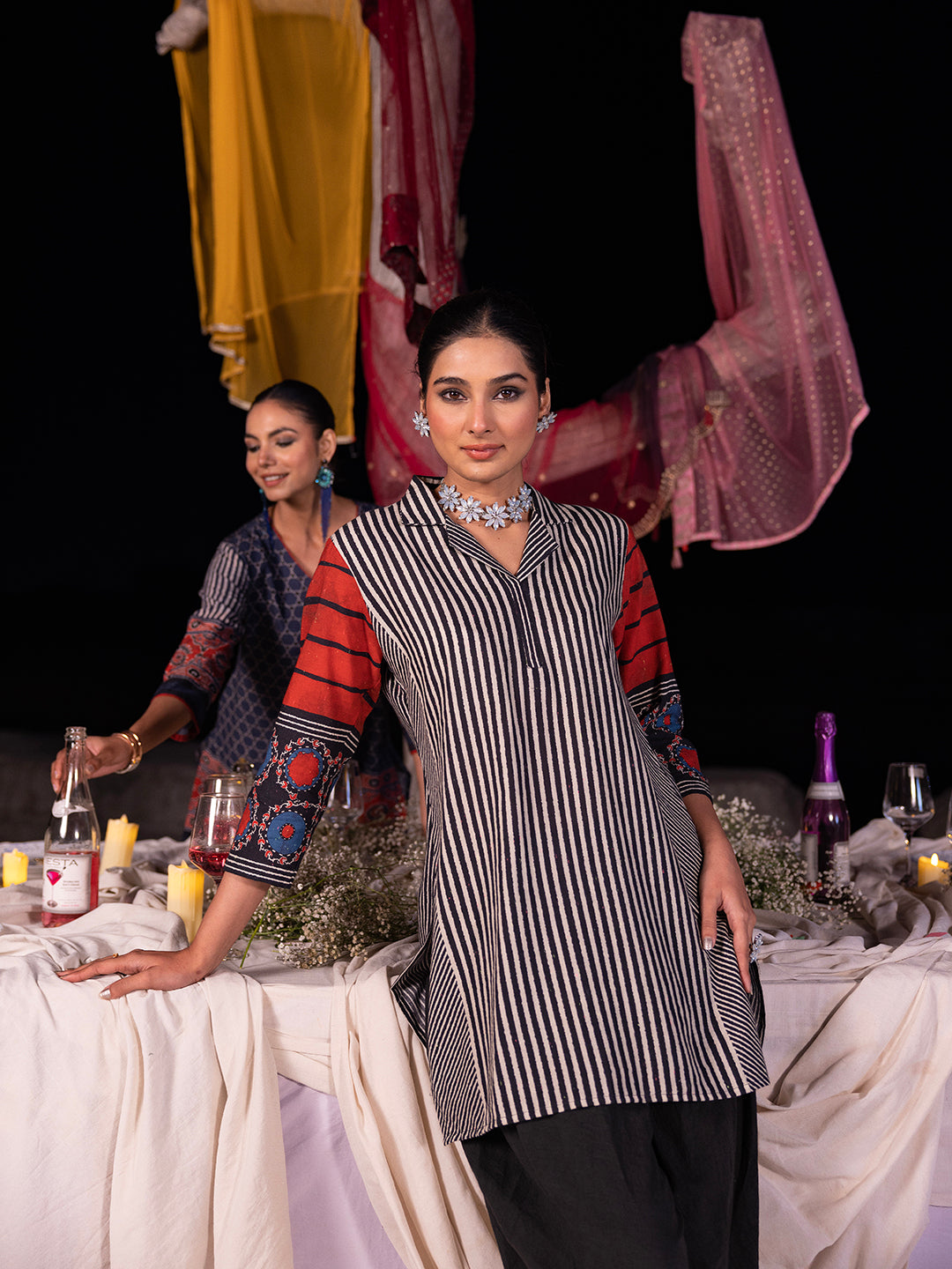 Keep it cool and classic with the Span Black Collared Cotton Casual Short Kurta. Designed in breathable cotton with a smart collar and easy fit, it's the perfect pick for effortless everyday style.