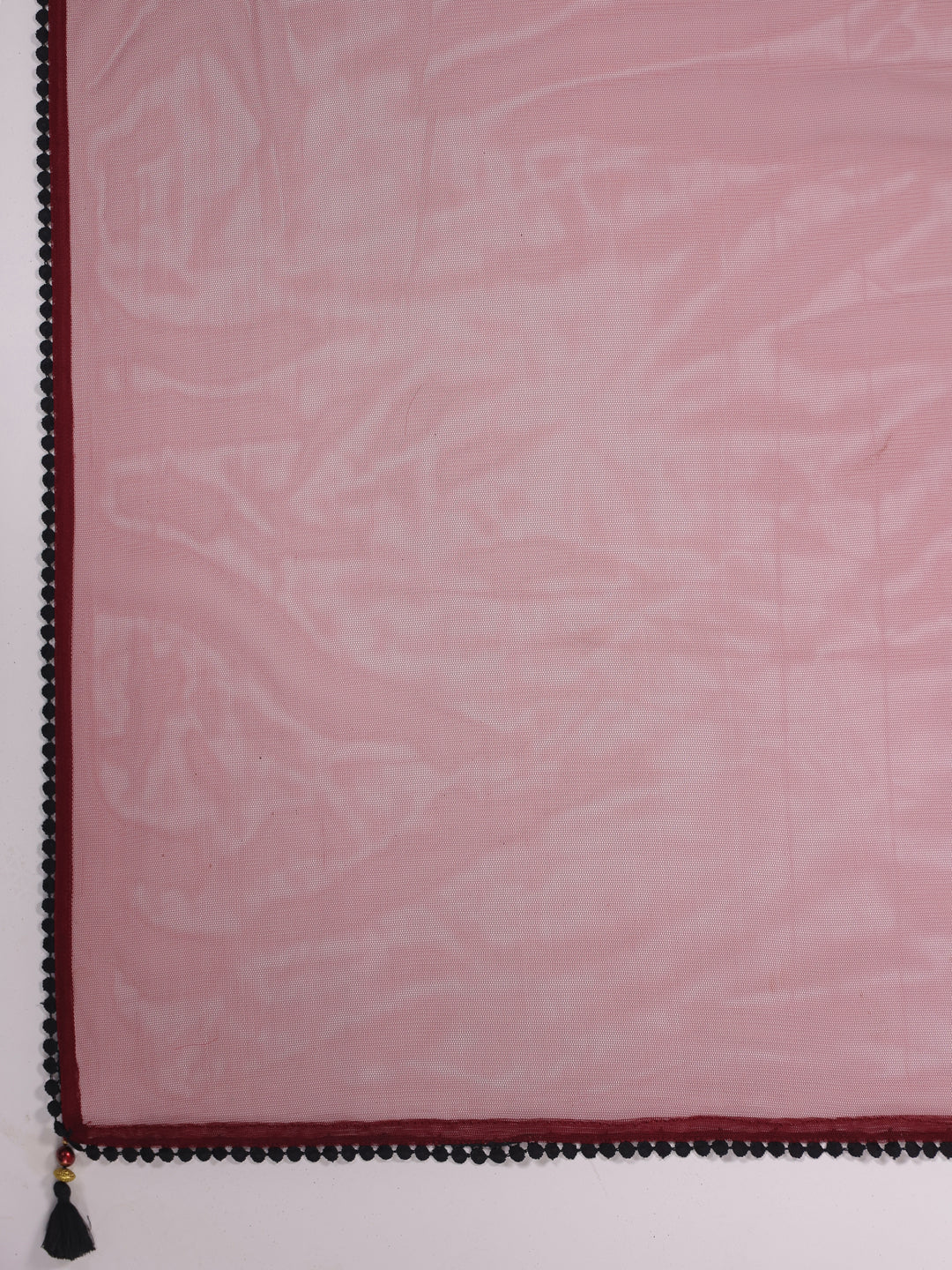 Black Round Neck Viscose Kurta Set with Dupatta – Featuring a vibrant paisley print on soft viscose, this kurta set comes with flared black pants and a matching maroon dupatta. A perfect blend of tradition and elegance for festive and casual occasions.