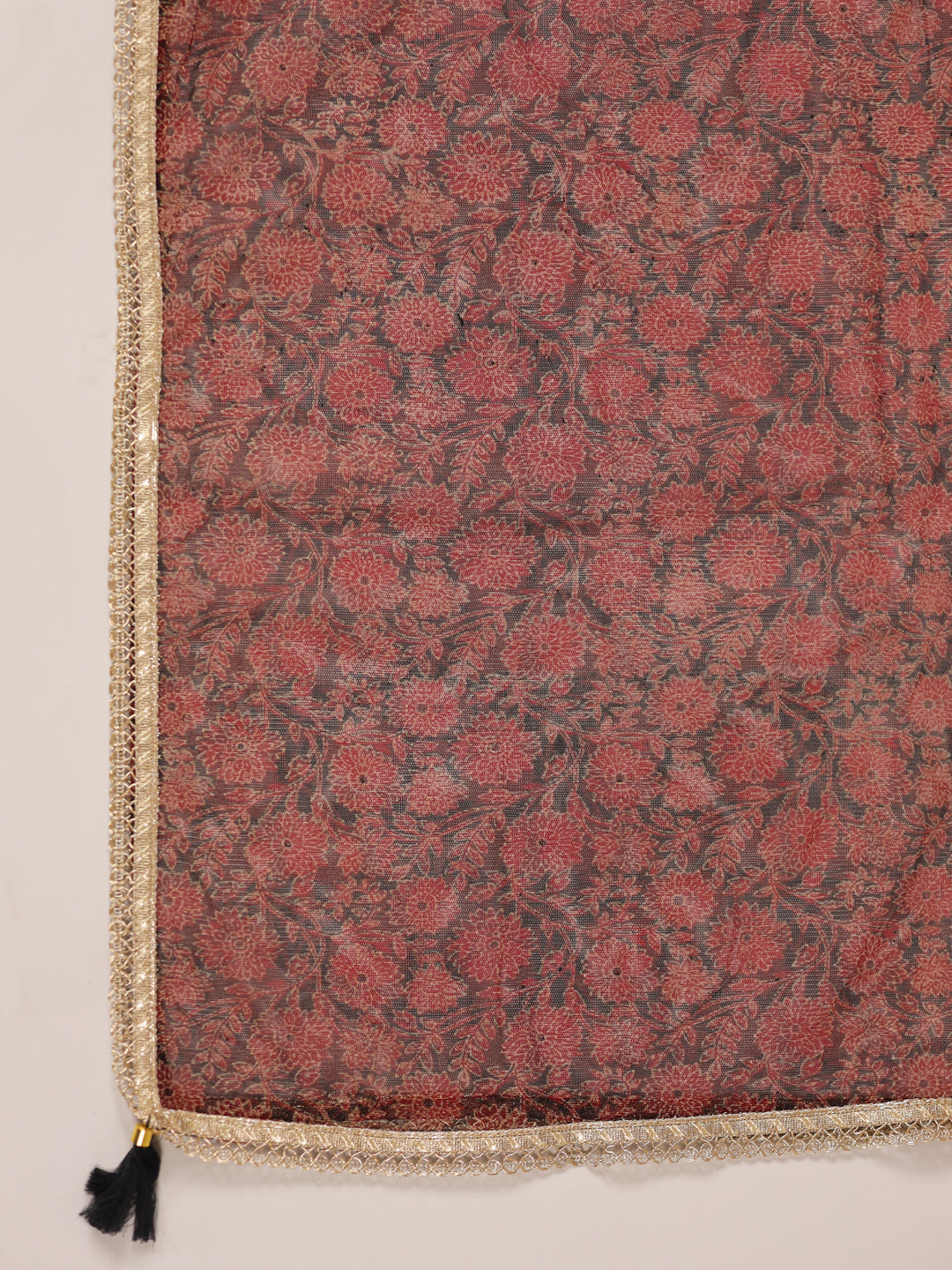 Span Black V Neck Silk Kurta Set wih Dupatta