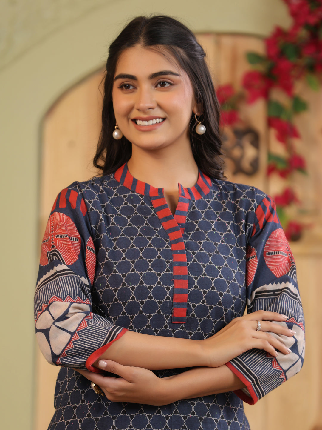 Add a touch of elegance to your wardrobe with this blue cotton kurta featuring a sleek mandarin collar. Perfect for casual or semi-formal occasions, its breathable fabric ensures comfort while the modern design keeps you looking sharp.
