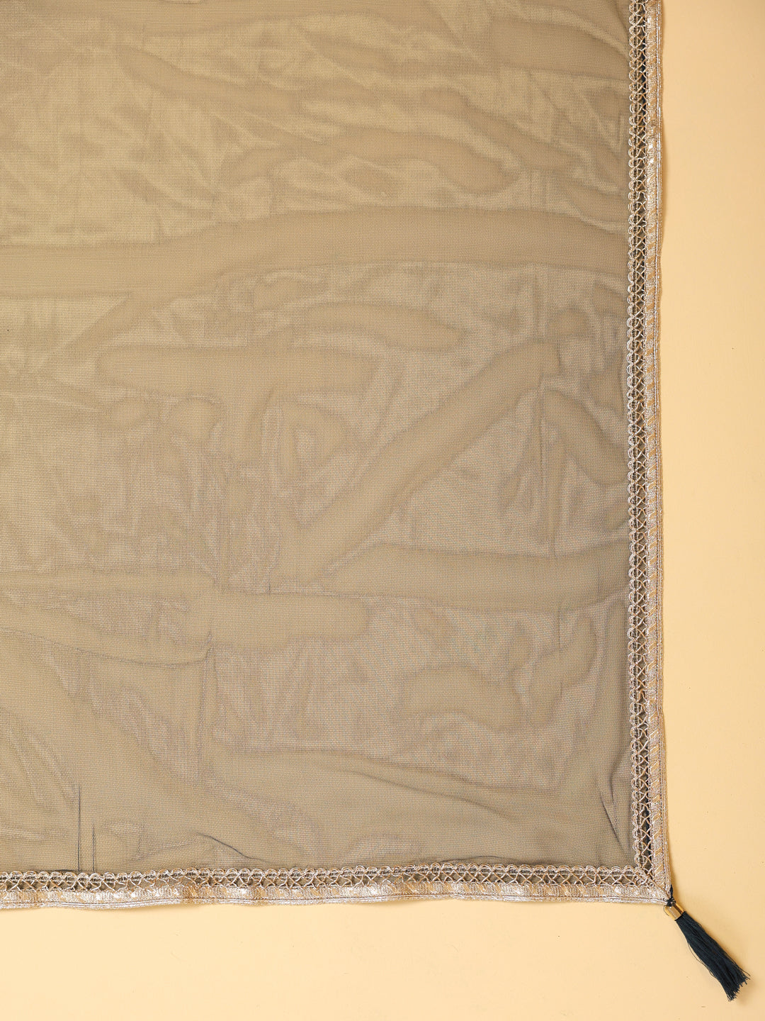 Span Blue Round Neck Viscose Kurta Set with Dupatta