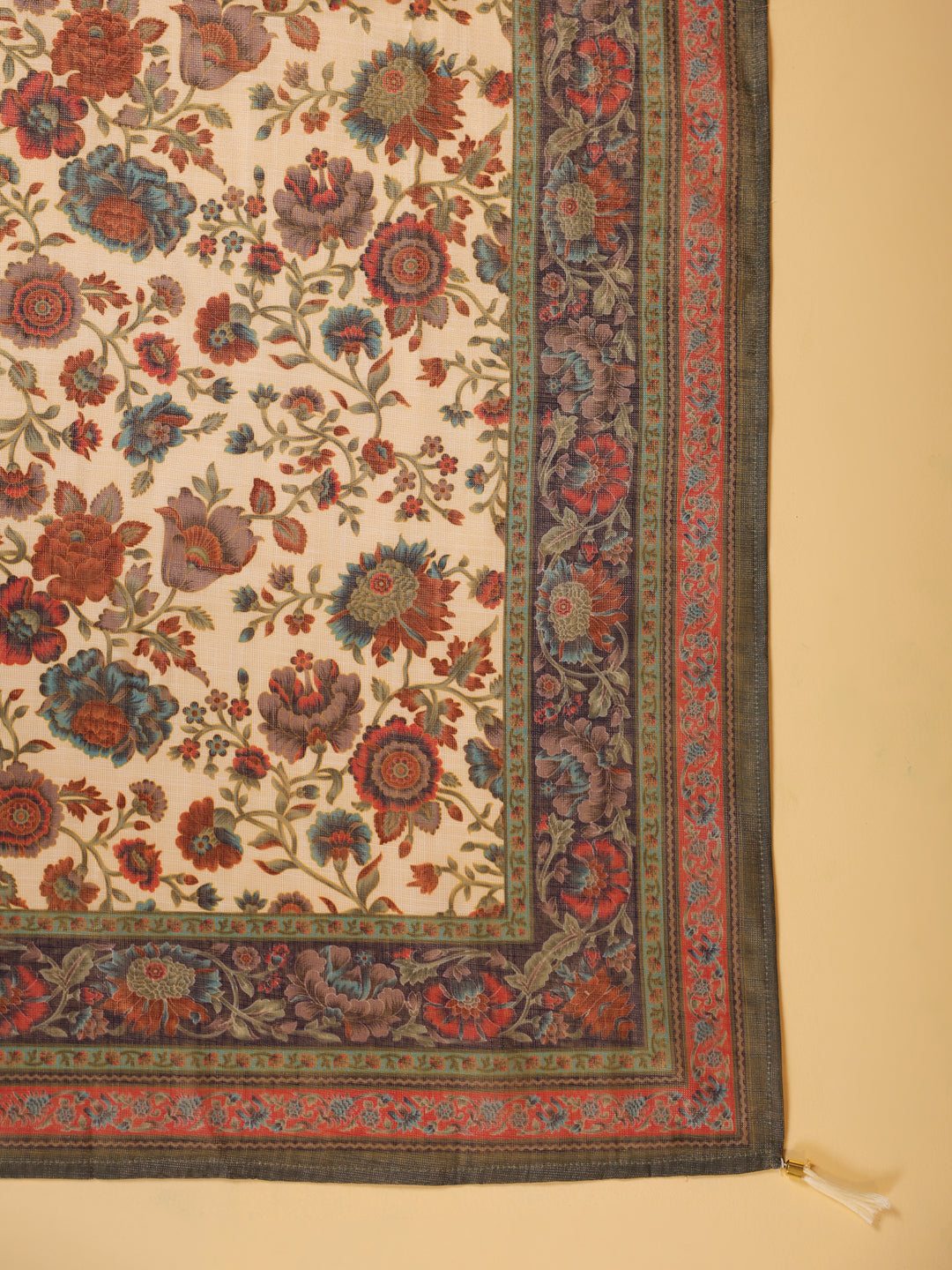 Span Ivory Round Neck Silk Kurta Set with Dupatta